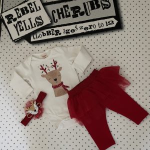 2 Piece Glitter Reindeer Romper & Tutu Leggings