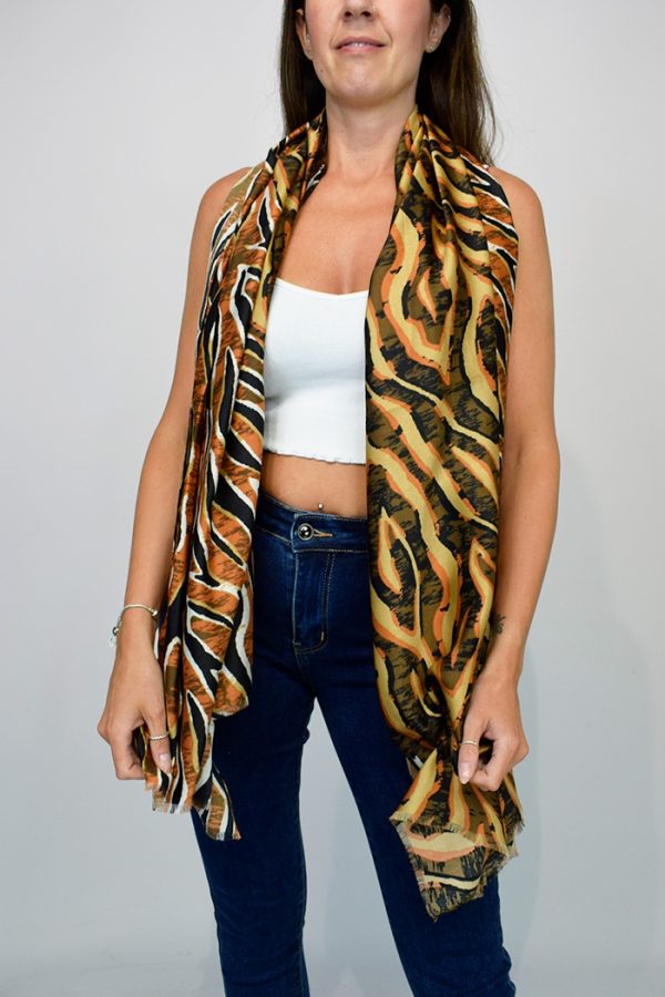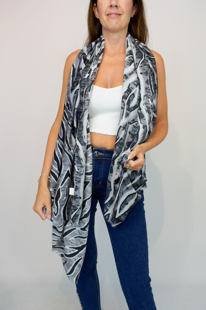 Brighten up an outfit with our lightweight viscose scarf in a coloured multi-animal print in a fantastic range of colours. Available in brick, stone or grey.