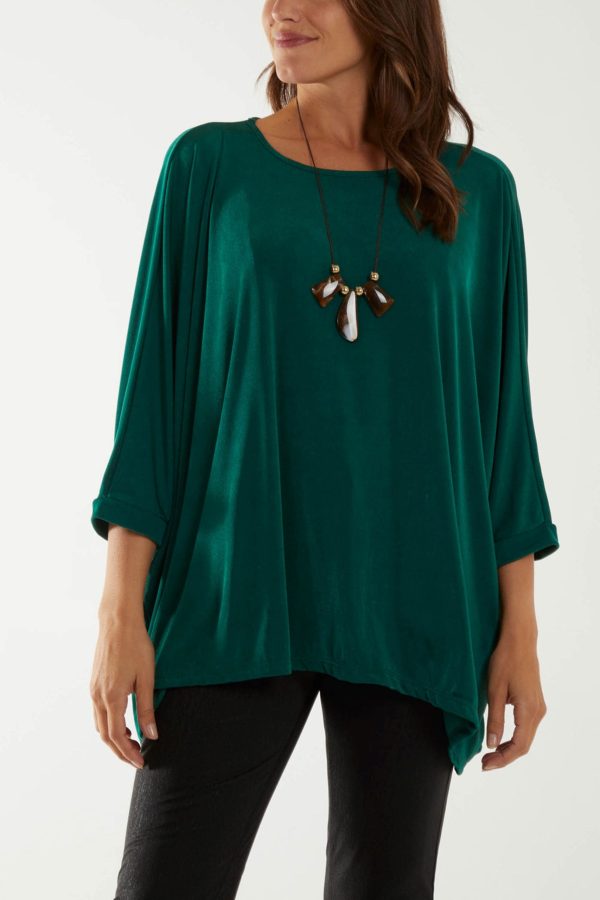This super stretchy green batwing top comes complete with a stylish necklace. Create a Co Ord with our matching trousers. One Size 14-18