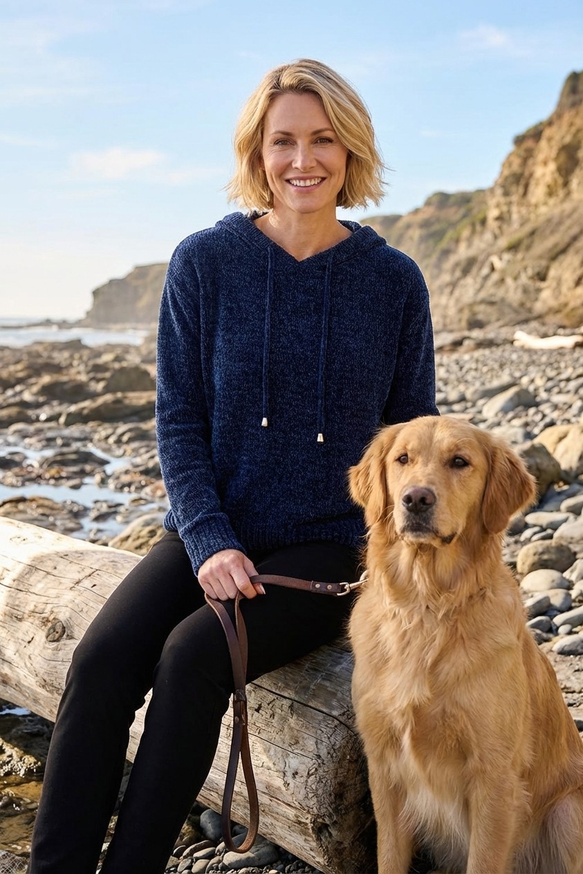 This cosy chenille hoodie exudes comfort with its plush, textured fabric that feels soft against the skin. The rich, deep hue adds a vibrant touch, perfect for adding colour to any casual ensemble. Its relaxed silhouette features a slightly loose fit, complemented by ribbed cuffs and hem that ensure a snug, comfortable wear. A practical hood with adjustable drawstrings and metallic tips adds functionality and style. Ideal for laid-back weekends or cosy evenings, this hoodie pairs effortlessly with jeans or leggings for a chic, relaxed look. Sizes S/M (10-14) and M/L (14-18).  Available in Ruby Red or Sapphire Blue.