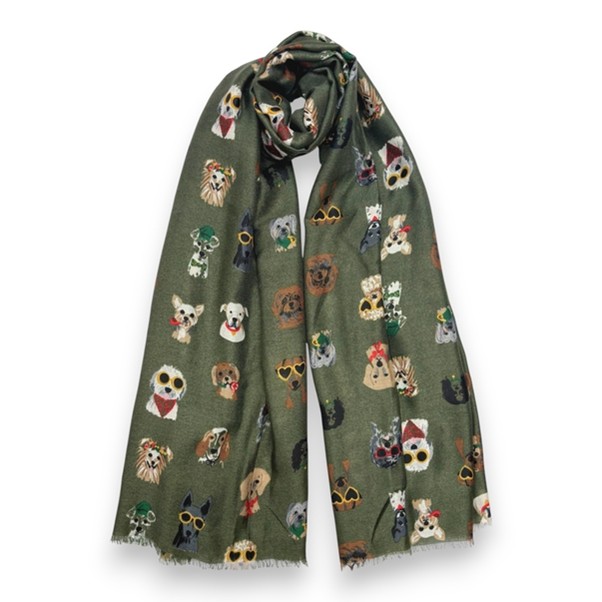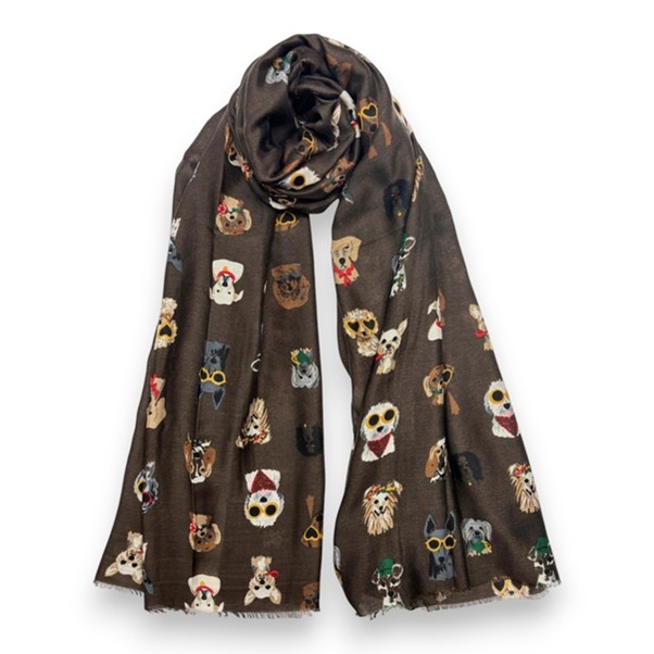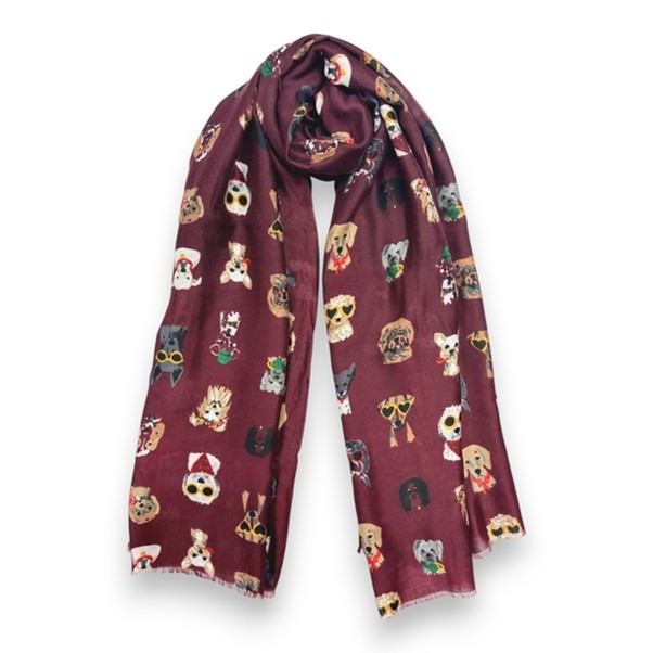 Our cute scarf features a print of different dogs. Available in wine, blue, khaki or chocolate.