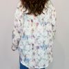 Our beautiful longline blouse features shades of purples and blues. The pretty lace blouse features embossed fabric in attractive shades of blues and pinks. One size 10-16.