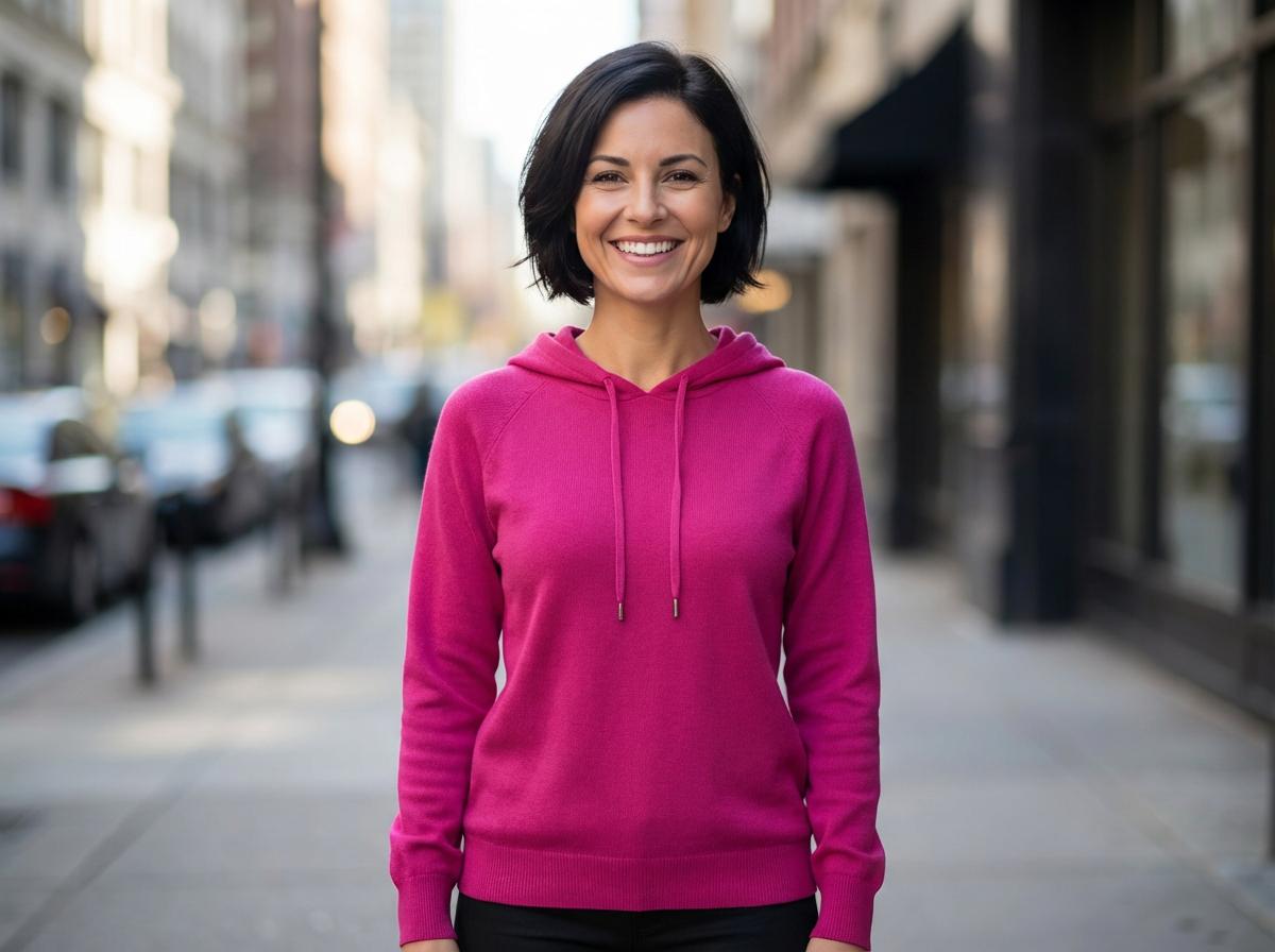 Our fine knit hoodie combines comfort and style with its smooth, cosy fabric that gently drapes over the body for a relaxed yet flattering fit. The minimalist design is elevated by delicate gold-toned drawstring tips, adding a subtle touch of elegance to the casual staple. Its clean lines and ribbed cuffs and hem ensure a snug fit, perfect for layering during cooler days. Ideal for both casual outings and lounging at home, this hoodie pairs effortlessly with jeans or leggings for a chic, laid-back look.  Available in Fuchsia, Apple, Lemon, Pink or Navy.  One Size fitting 10-16.