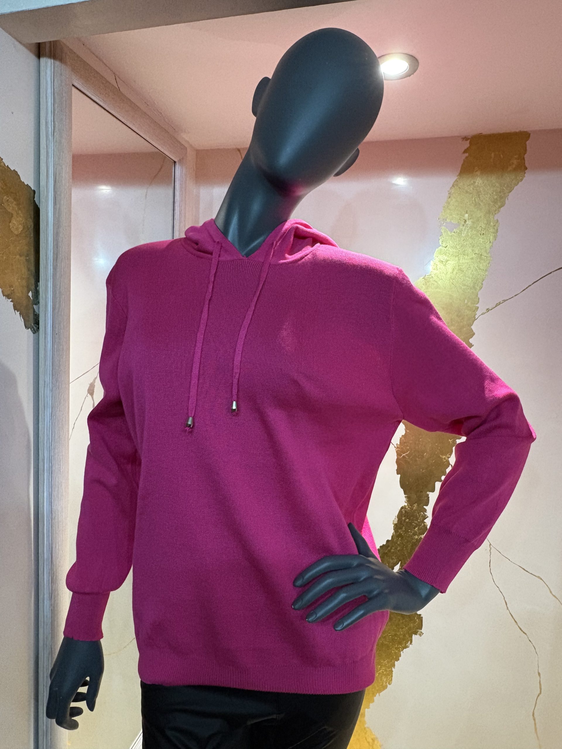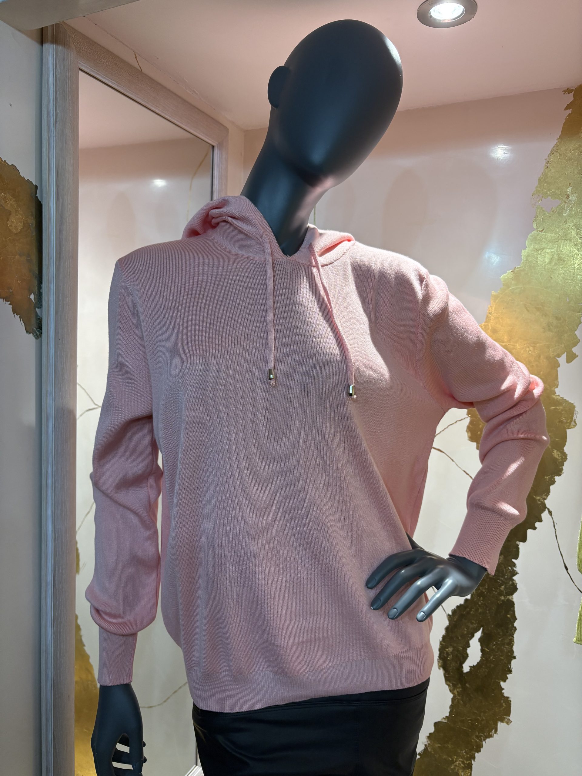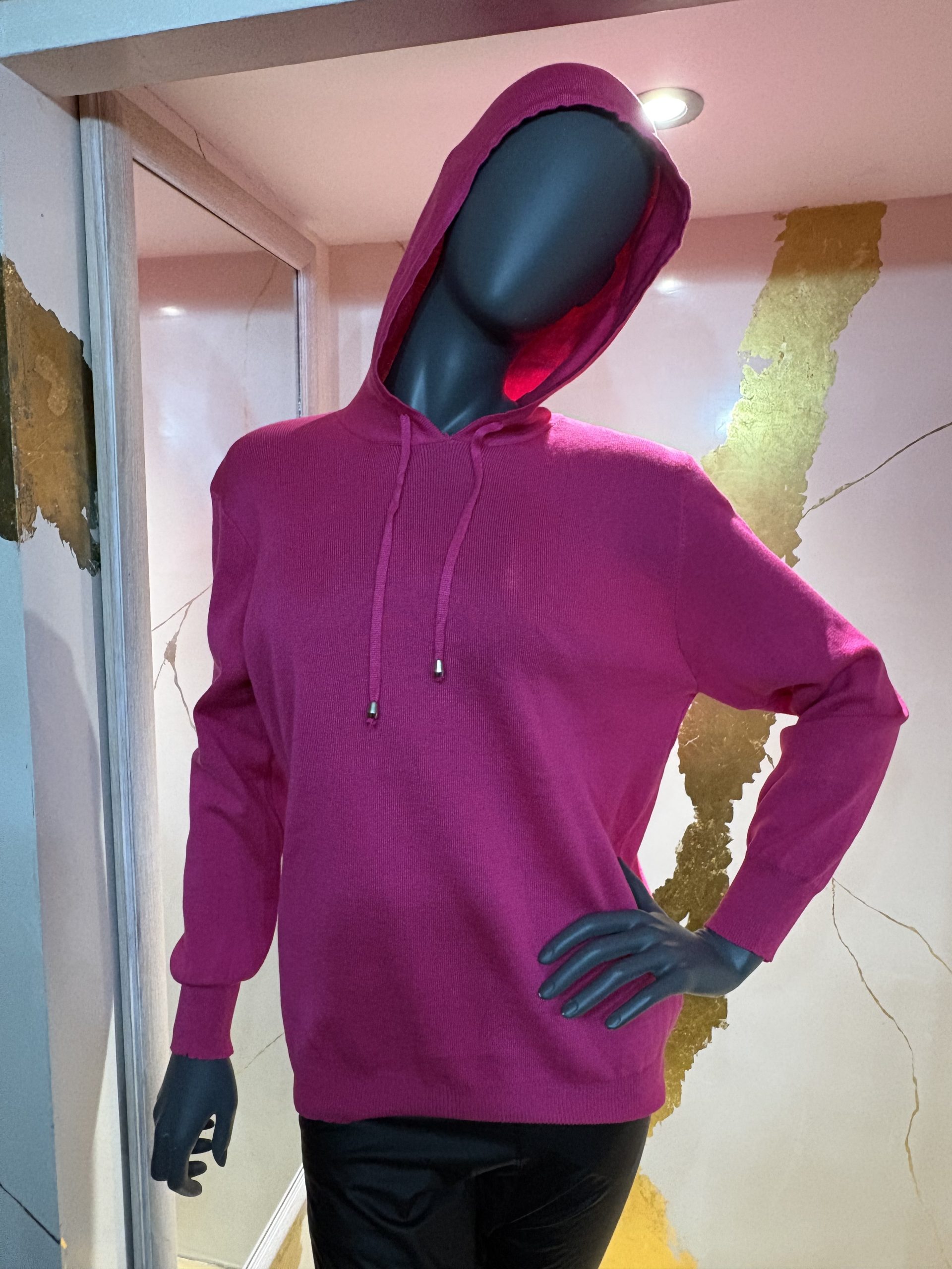 Our fine knit hoodies in a silky soft fabric have a adjustable tie hood. Available in peach, fuchsia, navy, lemon and apple. One size 10-16.