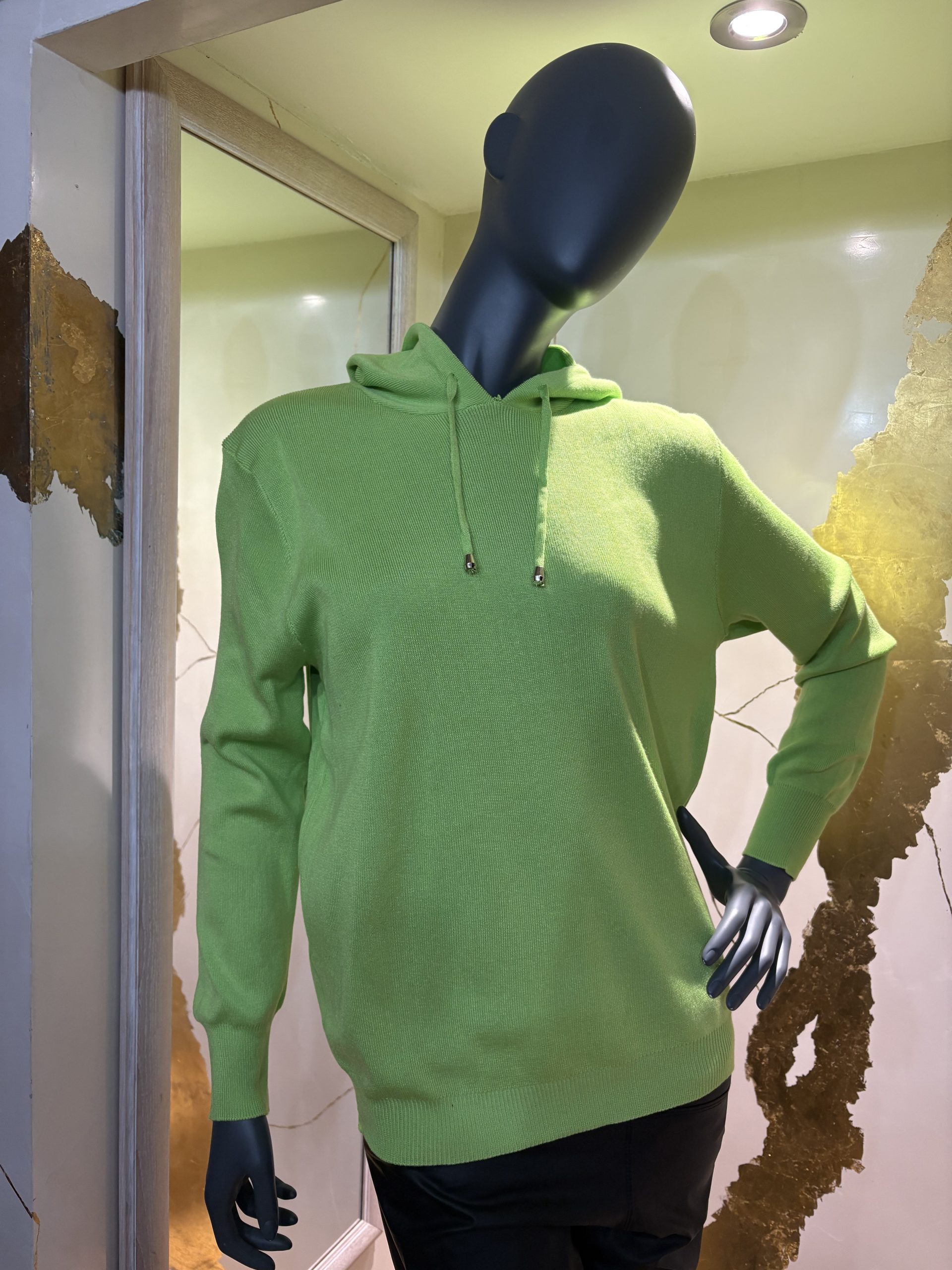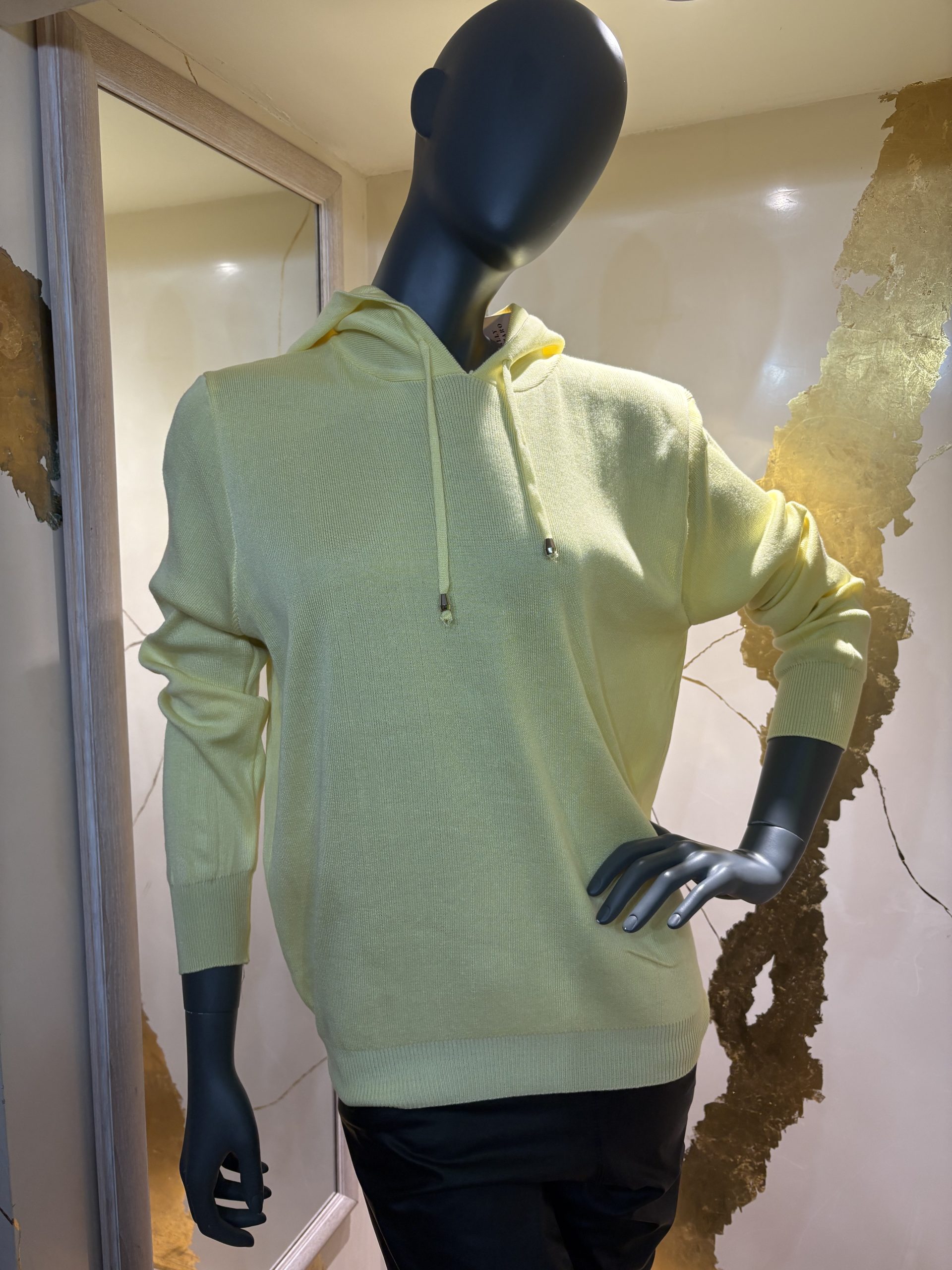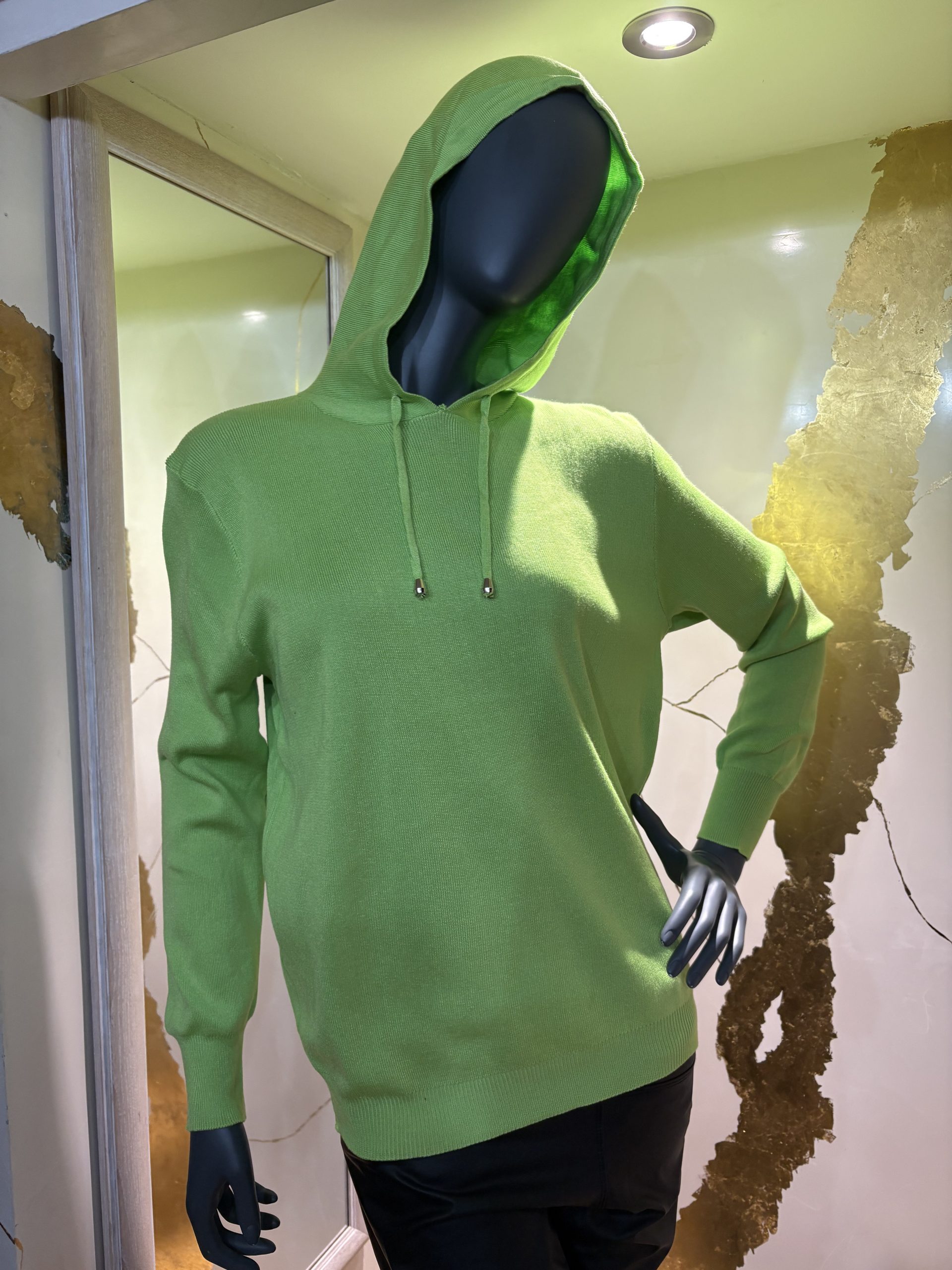 Our fine knit hoodies in a silky soft fabric have a adjustable tie hood. Available in peach, fuchsia, navy, lemon and apple. One size 10-16.