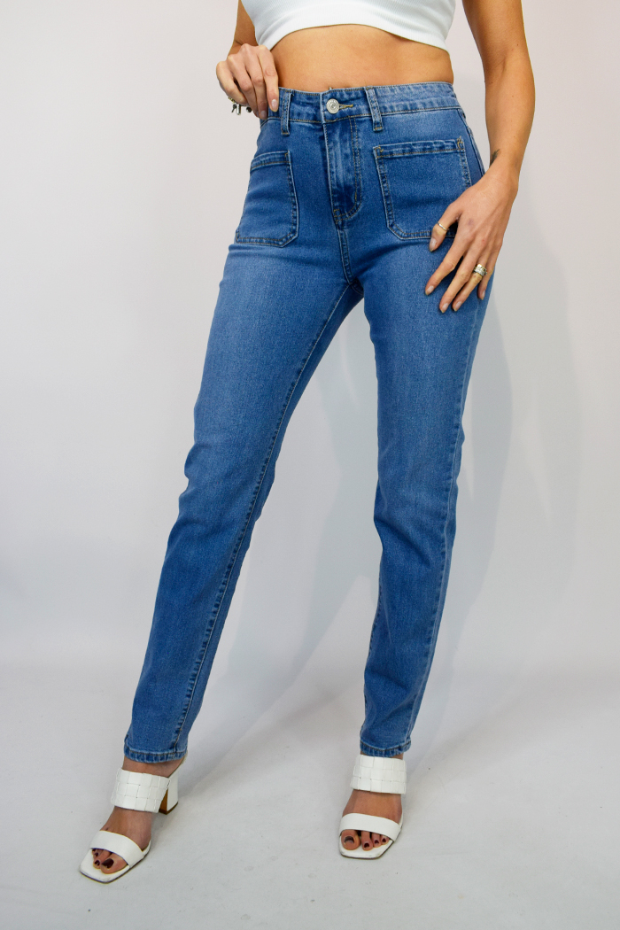 Our B&S deep rise fit jeans are in a soft and stretchy denim with a regular to skinny leg. They have unusual reverse front pockets in a classic washed denim. Sizes 8 to 16.