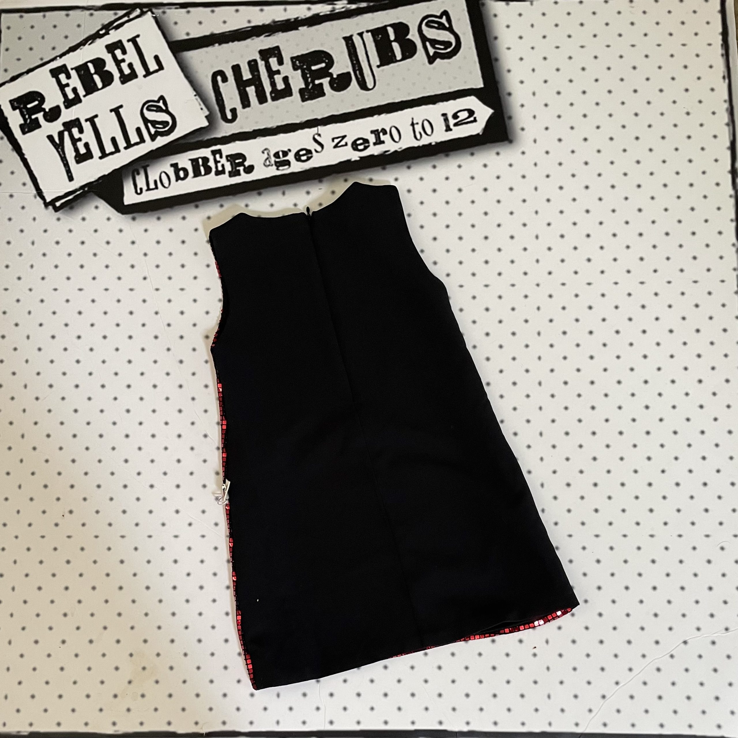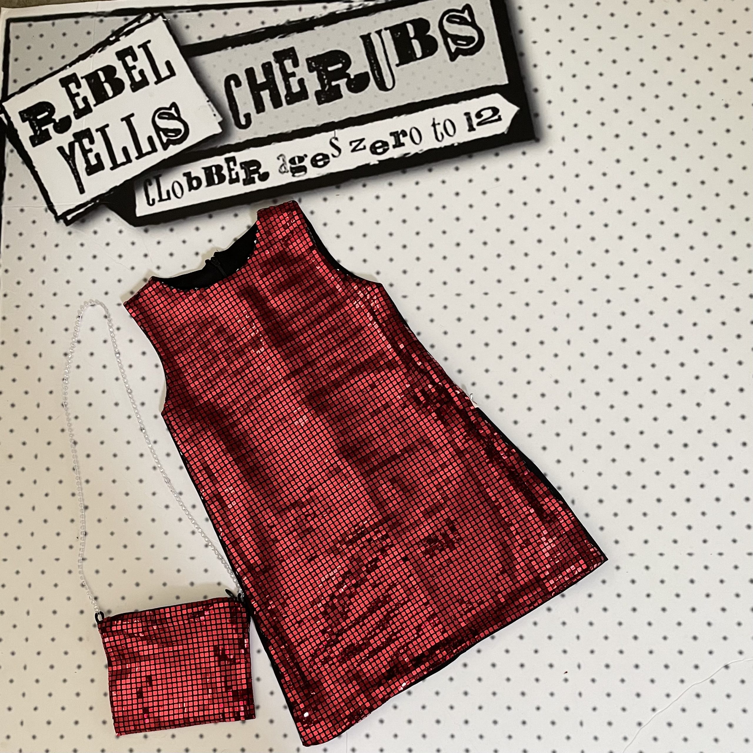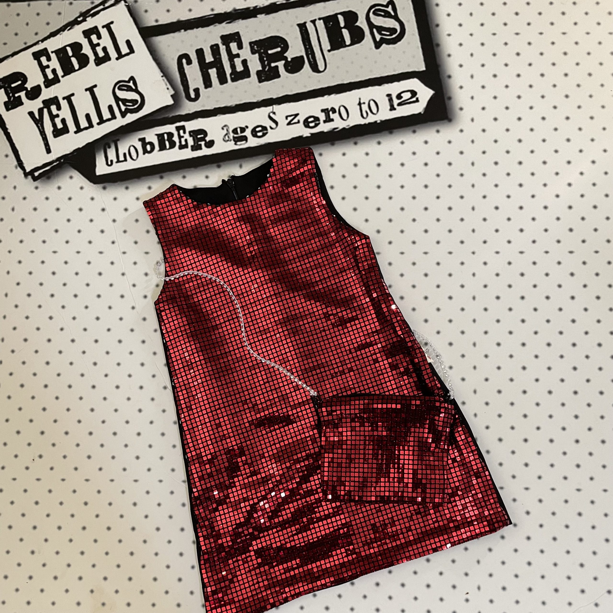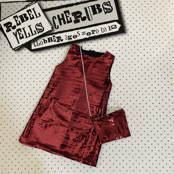 This one is certainly a show stopper perfect for your little diva during the festive season.  This metallic fronted sleeveless red dress is super shiny.  The back is plain black and fastens with a zipper.  To complete this outfit is a matching purse with gold metal strap and zipper fastening.  Available in ages 2, 3, 4 and 5, fully washable.