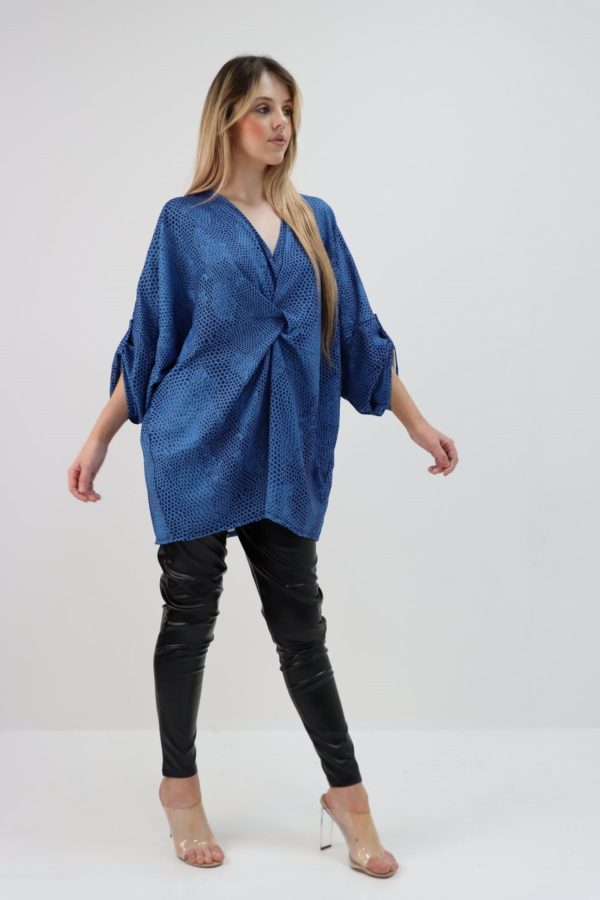 Our Oversized Italian Snake Print Top features a plunge V neck, turn up batwing sleeves and twisted front detail. Available in Black, Pink and Blue in One Size 16-24. Polyester/Elastin.