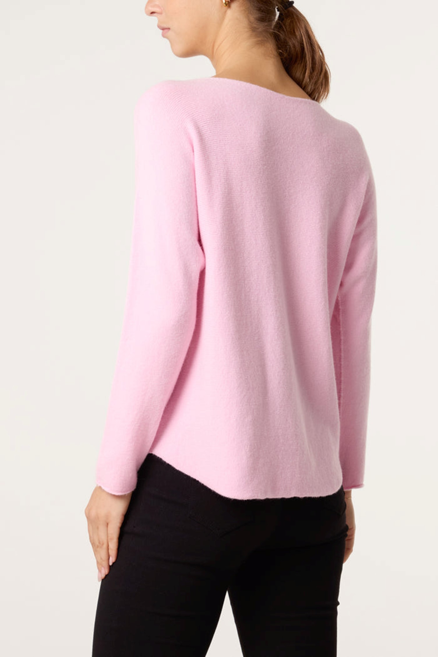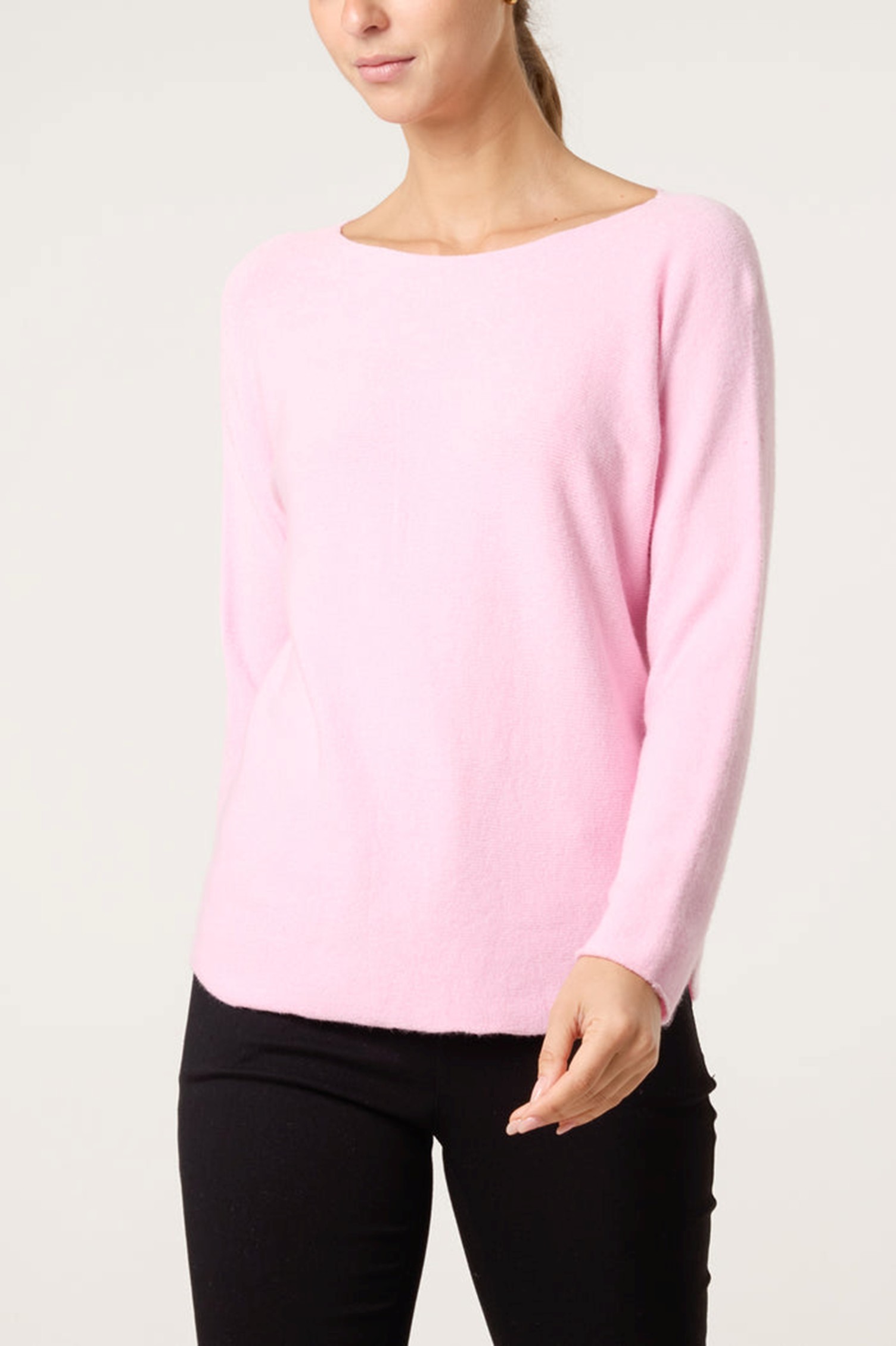 Our soft touch jumper is an essential for your wardrobe.  Available in two soft shades of pink and blue.  One size fits 10-16.