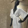 Perfect for holidays this cute v neck short sleeved playsuit has an elasticated waist. It also ties at the waist and has 2 side pockets. Available in Cream, White, Royal Blue, Pink, Orange, Khaki or Black. One Size 8 – 14 100% Polyester.